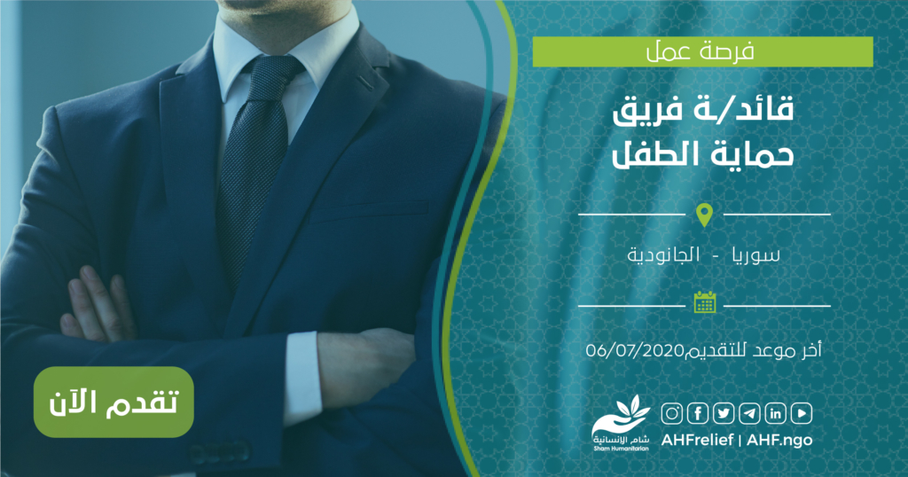 | قائد/ة فريق حماية الطفل | الحماية | ادلب – الجانودية | 06/07/2020 |