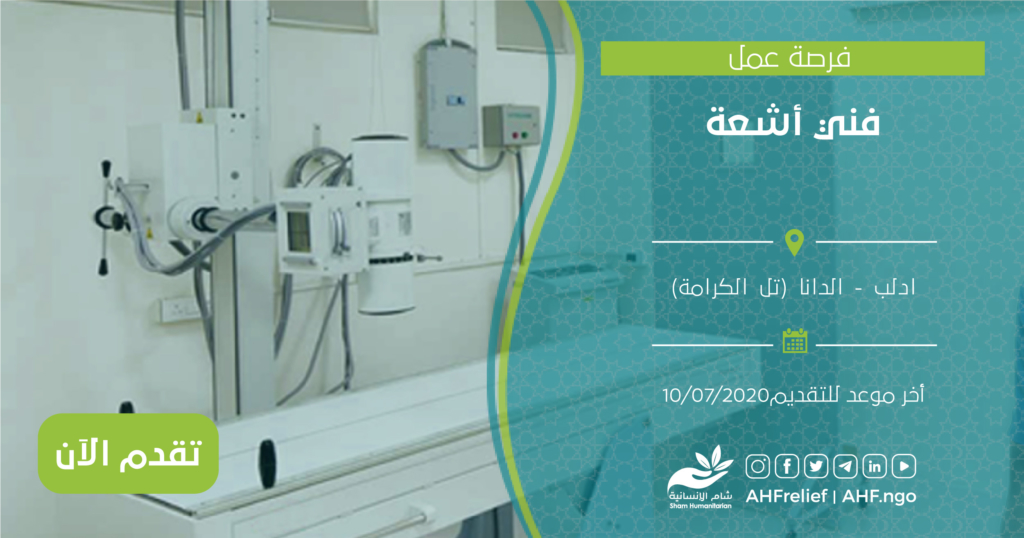 | فني أشعة | البرنامج الطبي | ادلب – الدانا (تل الكرامة) | 10/07/2020 |