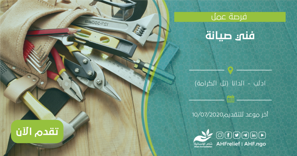 | فني صيانة | البرنامج الطبي | ادلب – الدانا (تل الكرامة) | 10/07/2020 |