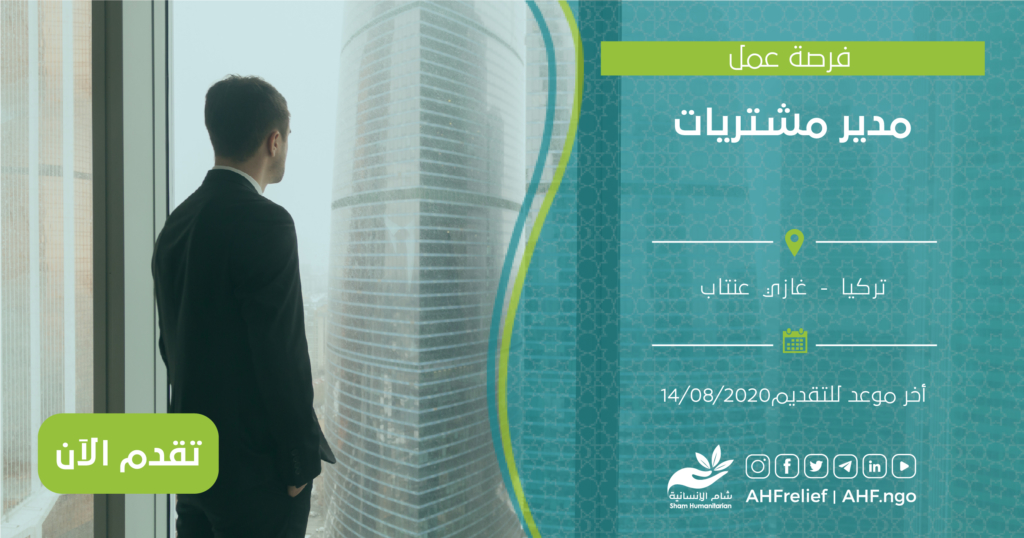 | مدير المشتريات والشؤون اللوجستية | الشؤون الادارية | تركيا – غازي عنتاب | 14/08/2020 |
