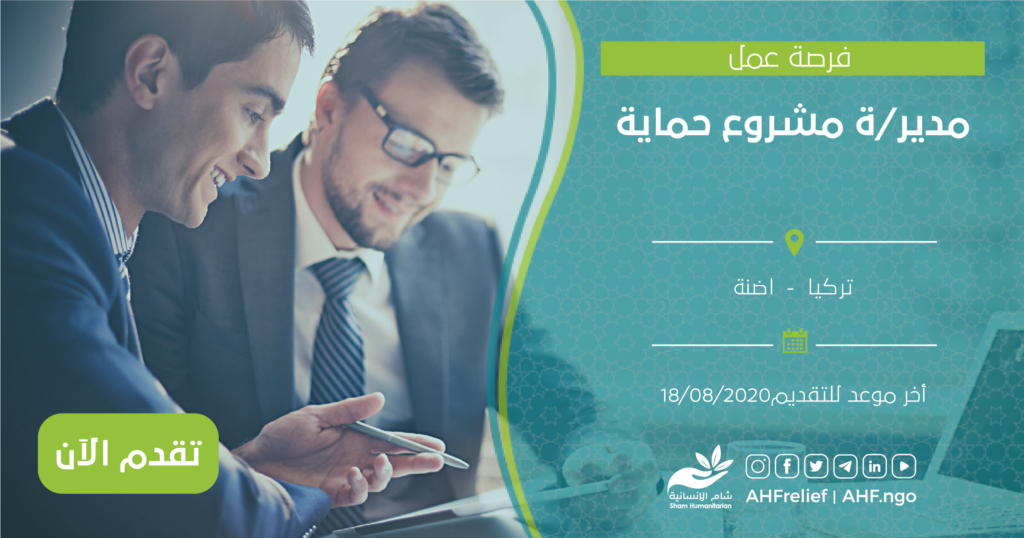 | مدير مشروع الحماية | مدير برنامج الحماية | تركيا – أضنة | 18.08.2020 |
