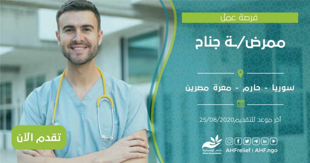 | ممرض / ممرضة جناح | المكتب الطبي | سوريا – حارم – معرة مصرين | 25/08/2020 |