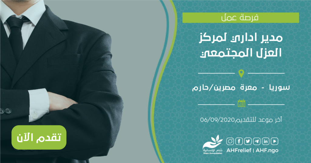 | مدير مركز العزل المجتمعي | المكتب الطبي | سوريا – معرة مصرين – حارم | 09/06/2020 |