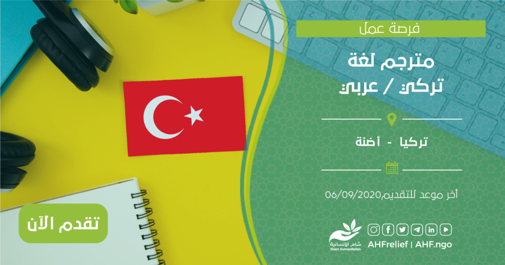 | مترجم لغة تركي/عربي | مدير برنامج الحماية | تركيا – أضنة | 06/09/2020 |