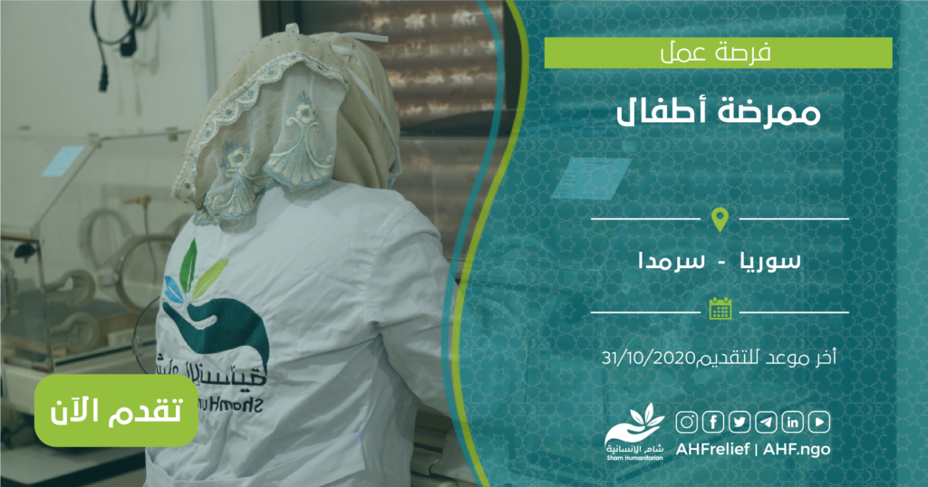 | ممرضة أطفال | البرنامج الطبي | ادلب – سرمدا | 31/10/2020 |