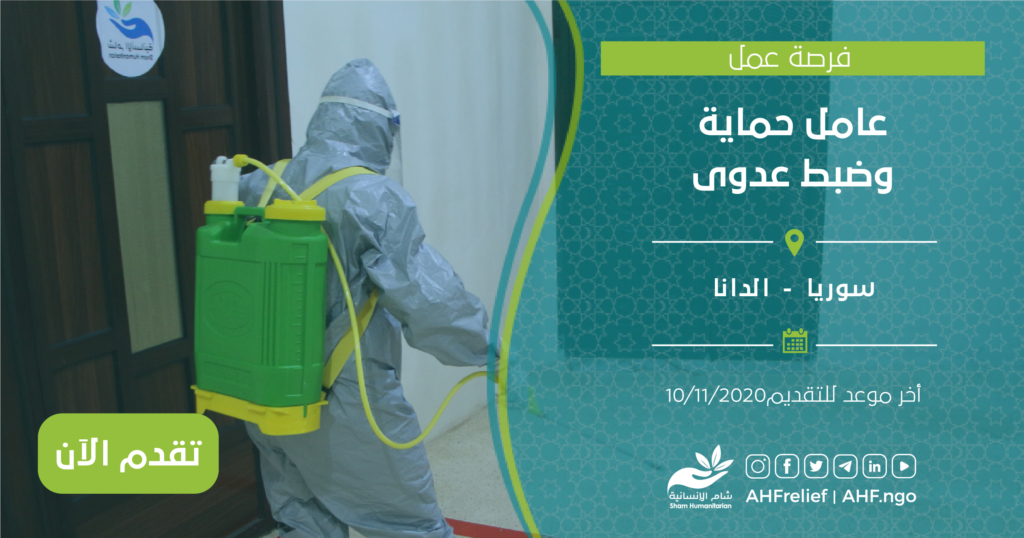 | عامل حماية وضبط عدوى | البرنامج الطبي | سوريا – الدانا | 10/11/2020 |