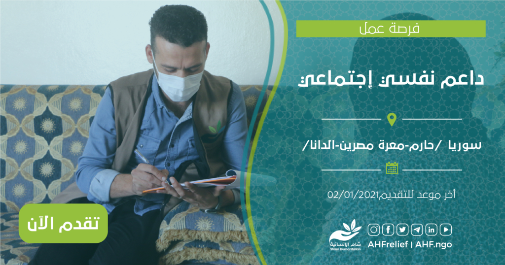 | داعم نفسي إجتماعي | برنامج الحماية | سوريا /حارم-معرة مصرين-الدانا/ | 02/01/2021 |