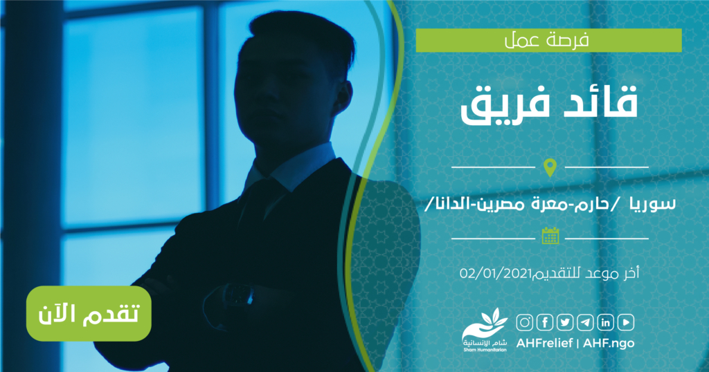 | قائد فريق | برنامج الحماية | سوريا /حارم – معرة مصرين – الدانا/ | 02/01/2021 |