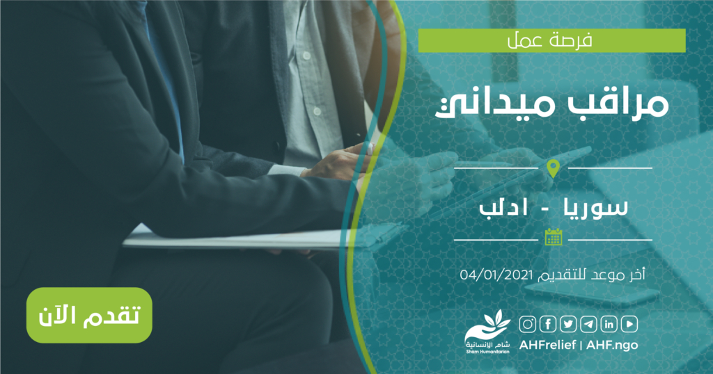 | مراقب ميداني | برنامج الامن الغذائي وسبل العيش | سوريا – ادلب | 04/01/2021 |