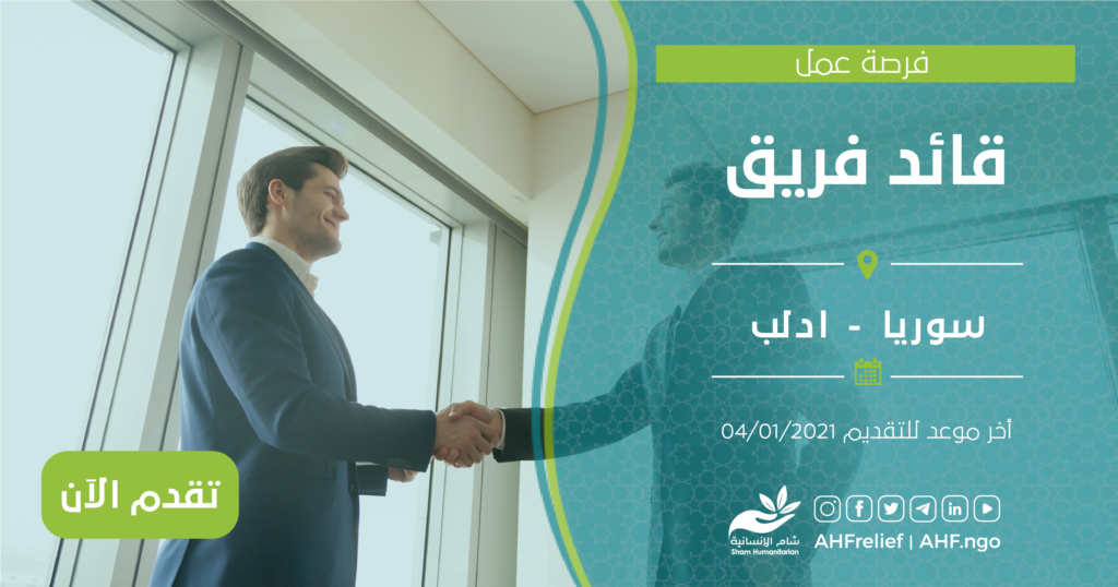 | قائد فريق | برنامج الامن الغذائي وسبل العيش | سوريا – ادلب | 04/01/2021 |