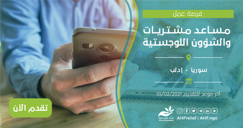 | مساعد مشتريات والشؤون اللوجستية | المشتريات والشؤون اللوجستية | سوريا-إدلب | 01/02/2021 |