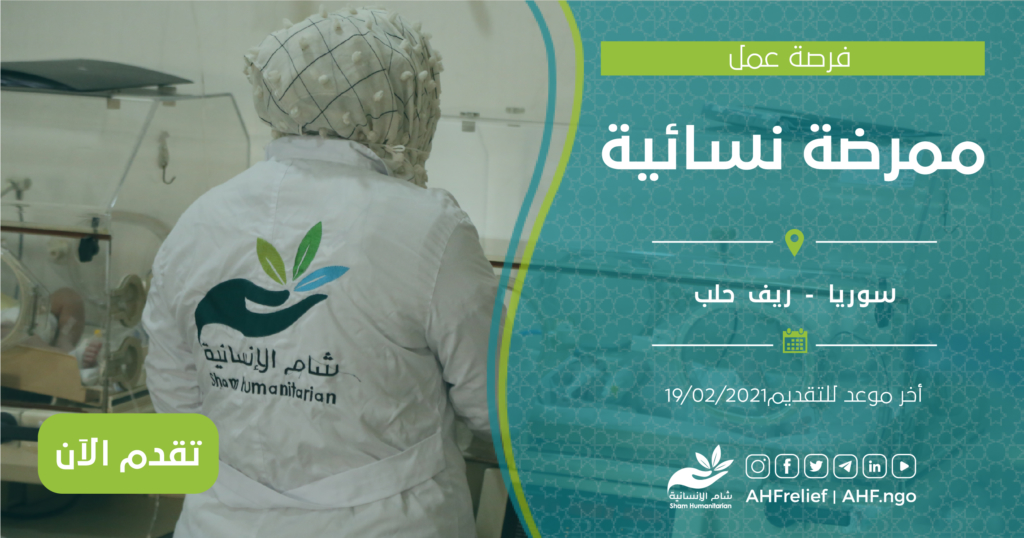 ممرضة نسائية البرنامج الطبي سوريا – ريف حلب الشمالي – سجو 19/02/2021