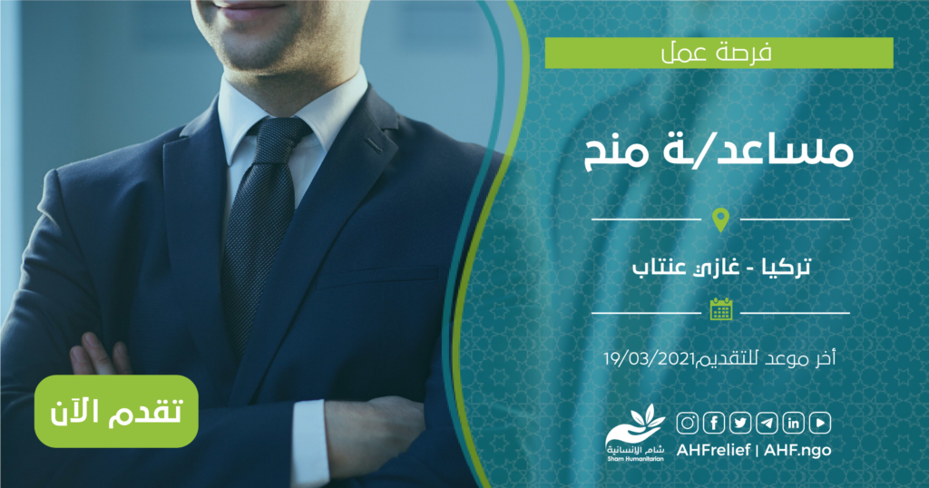 | مساعد/ـة منح | وحدة المنح | تركيا – غازي عنتاب | 19/03/2021 |