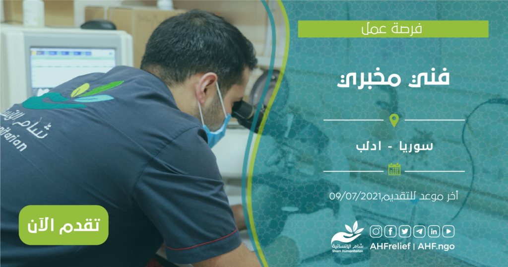 | فني مخبري | البرنامج الطبي | سوريا – ادلب | 09/07/2021 |