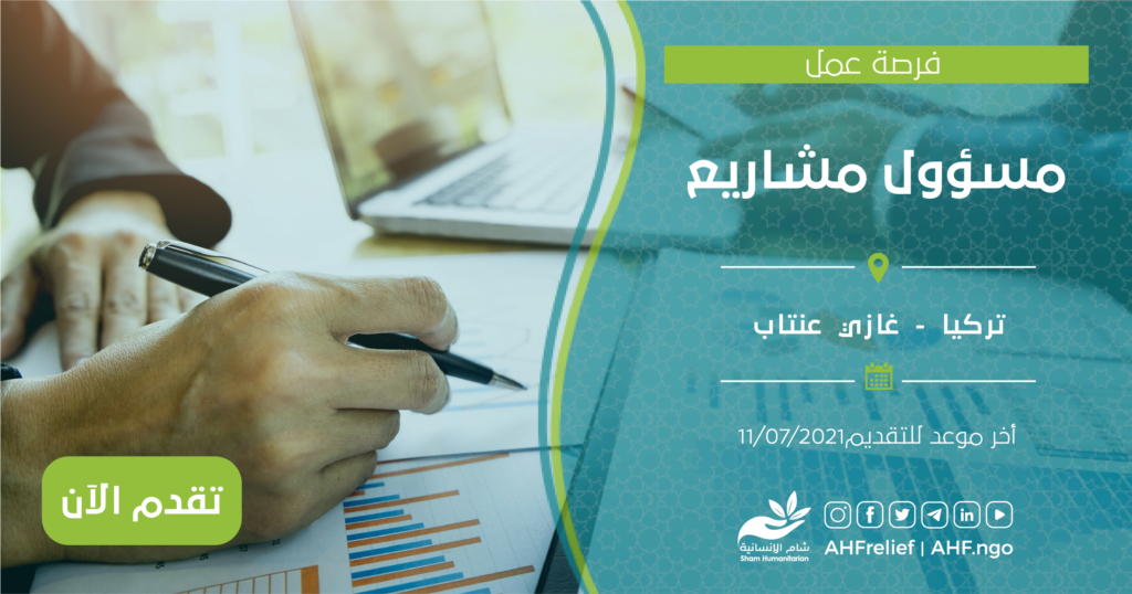 | مسؤول مشاريع | برنامج الاستجابة المبكرة | تركيا – غازي عنتاب | 11/07/2021 |