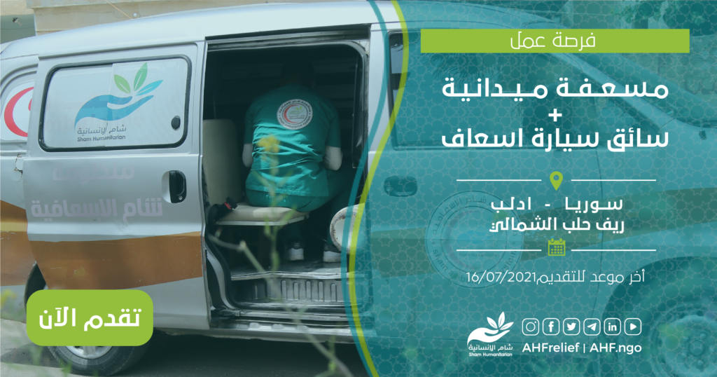 - خبرة سنة على الأقل بالعمل في منظومات الإسعاف أو أقسام الطوارئ.