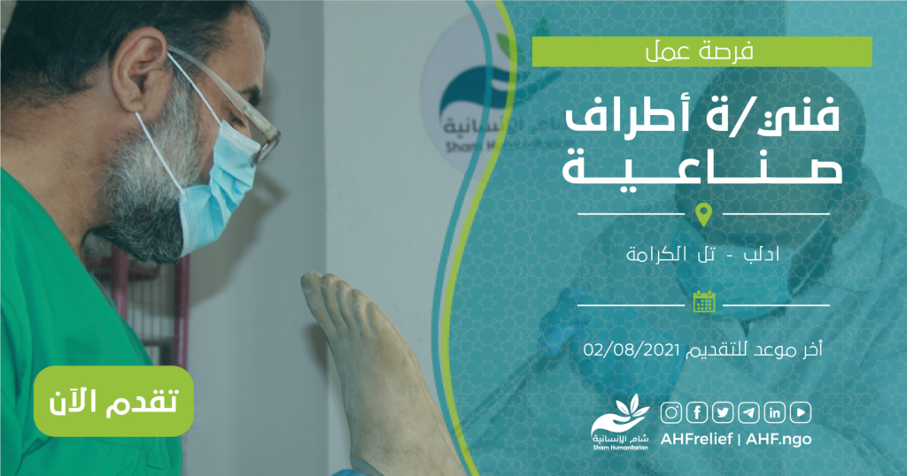 | فني/ة أطراف صناعية | البرنامج الطبي | ادلب – تل الكرامة | 02/08/2021 |