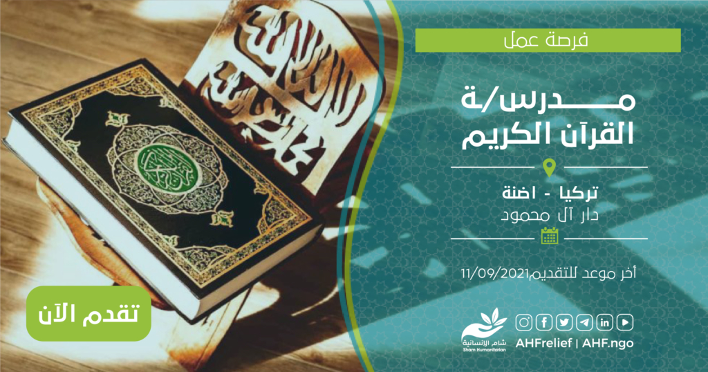 | مدرس/ـة لغة تركية | برنامج الحماية | تركيا – اضنة | 11/09/2021 |