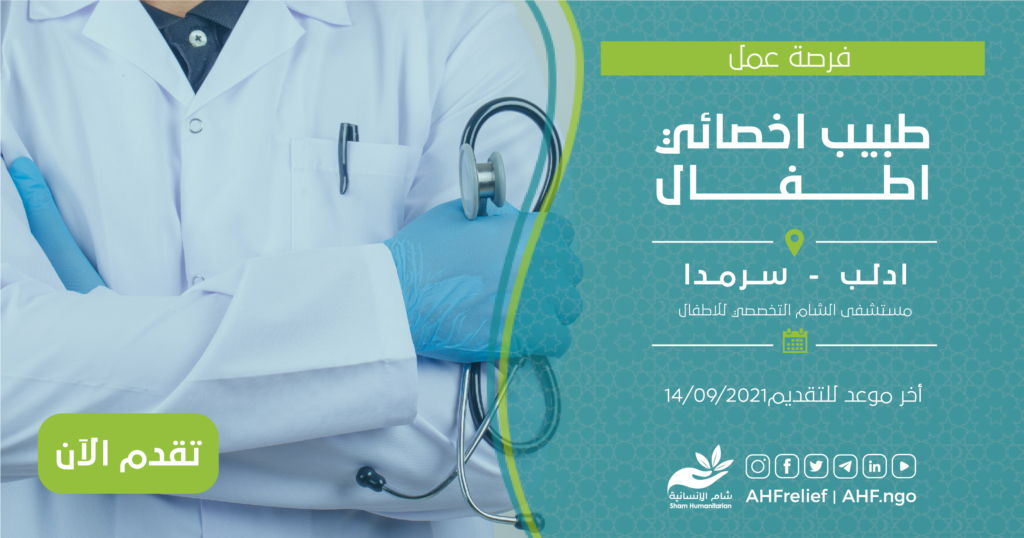 | طبيب اخصائي اطفال | البرنامج الطبي | ادلب – سرمدا | 14/09/2021 |