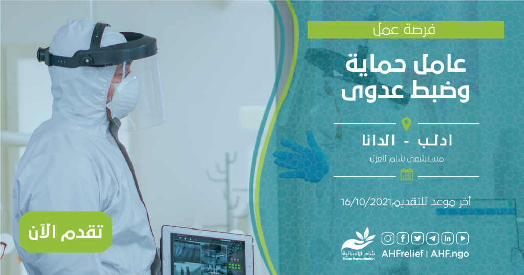 | عامل حماية وضبط عدوى | البرنامج الطبي | ادلب – الدانا | 16/10/2021 |
