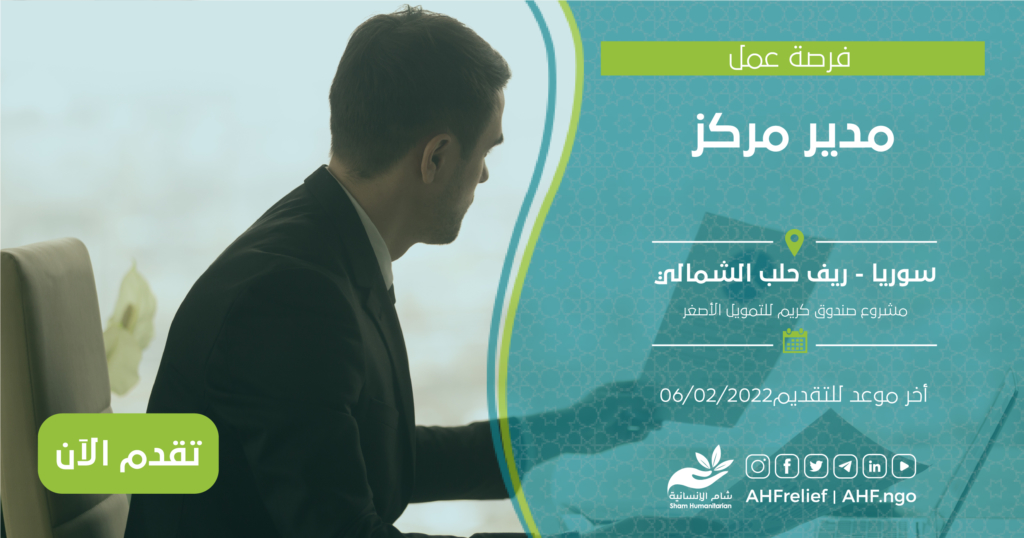 | مدير مركز | برنامج التعافي المبكر | سوريا – ريف حلب الشمالي | 06/02/2022 |