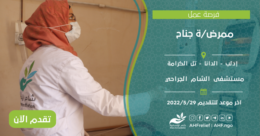 | ممرض/ة جناح | برنامج Health | إدلب – الدانا – تل الكرامة | 29/5/2022 |