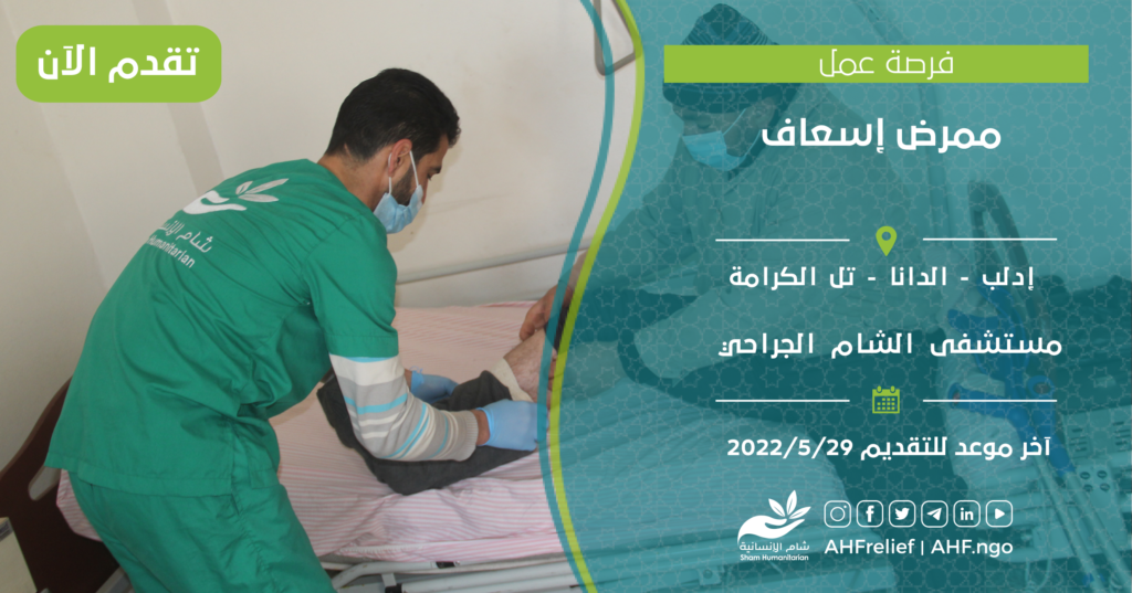 | ممرض إسعاف | برنامج Health | إدلب – الدانا – تل الكرامة | 29/5/2022 |