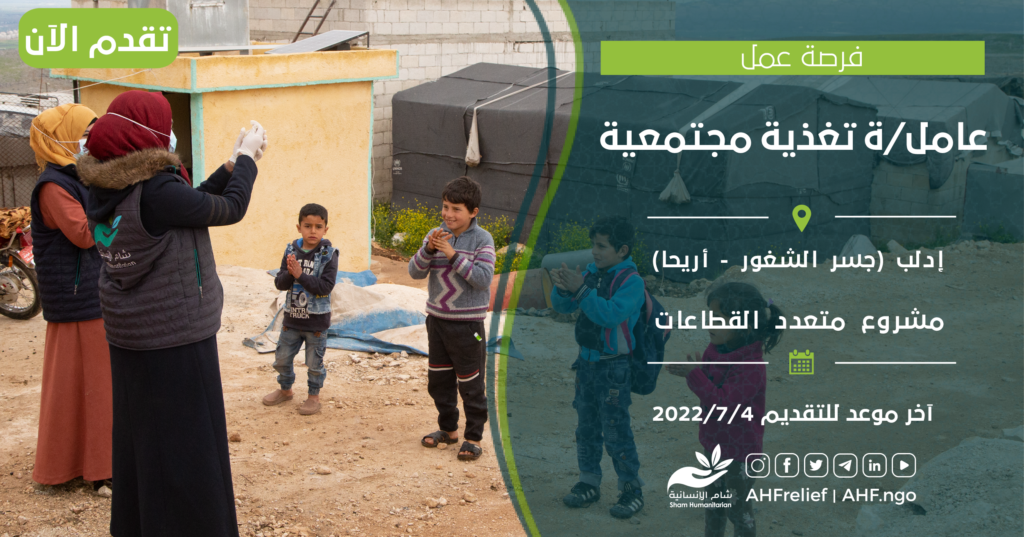 | عامل/ة تغذية مجتمعية | برنامج Health | إدلب (جسر الشغور – أريحا) | 4/7/2022 |