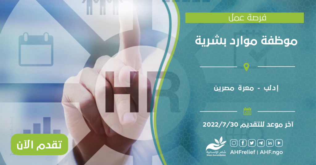 | موظفة موارد بشرية | الموارد البشرية | إدلب – معرة مصرين | 30/7/2022 |