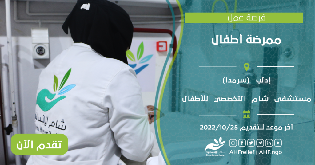 | ممرضة أطفال | برنامج Health | إدلب – سرمدا | 25/10/2022 |