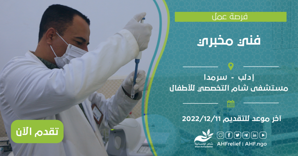 | فني مخبري | برنامج Health | إدلب – سرمدا | 11/12/2022 |