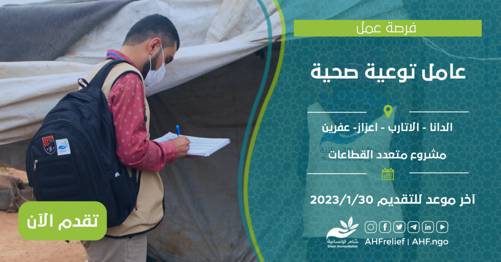 | عامل توعية صحية | برنامج Health | الدانا – الأتارب – اعزاز- عفرين | 30/1/2023 |