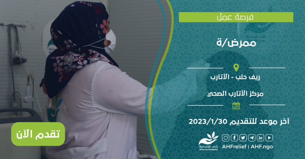 | ممرض/ة | برنامج Health | ريف حلب – الأتارب | 30/1/2023 |