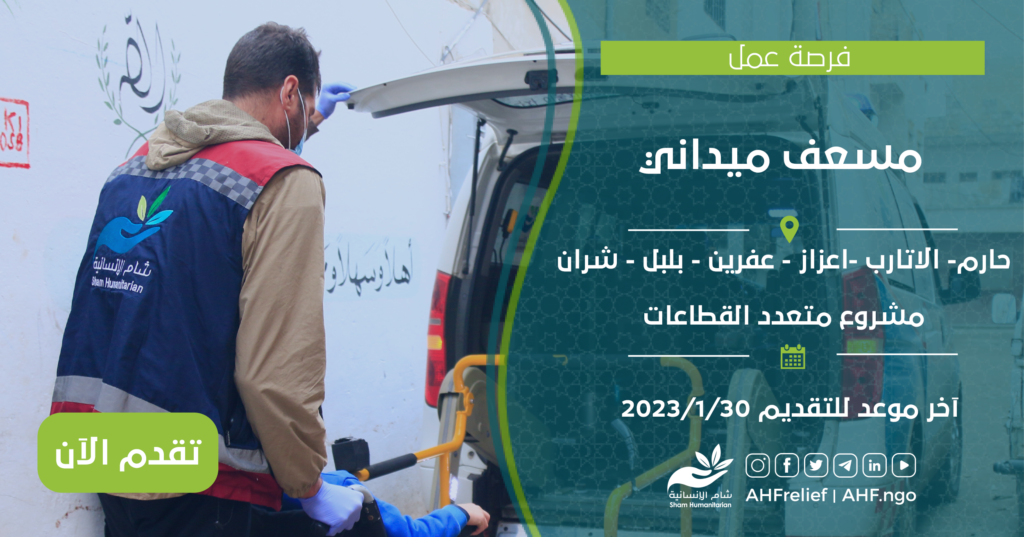 | مسعف ميداني | برنامج Health | حارم- الاتارب -اعزاز – عفرين – بلبل – شران | 30/1/2023 |