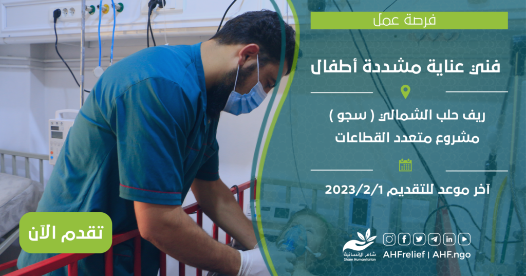 | فني عناية مشددة أطفال | برنامج Health | ريف حلب الشمالي ( سجو ) | 1/2/2023 |
