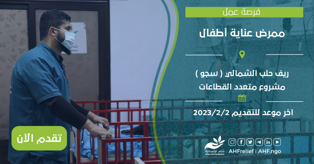 | ممرض عناية أطفال | برنامج Health | ريف حلب الشمالي (سجو) | 2/2/2023 |