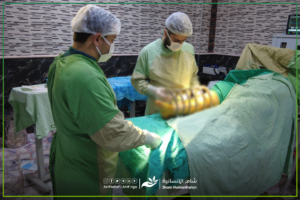 وبعد متابعة حالتها أجرى لها الفريق الطبي في المشفى الجراحي وبوجود الطبيب الأخصائي في الجراحة العظمية عملية تركيب جهاز إليزاروف للساق لعلاج عدم الاندمال وقصر الساق، تكللت العملية الجراحية بالنجاح التام وأصبحت المريضة بحالة صحية جيدة، تخرجت بعدها من المستشفى وكانت إرشادات الطبيب بإجراء جلسات متابعة للتقييم وإكمال العلاج.