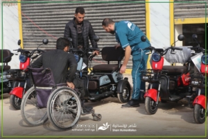 قدّمت #مؤسسة_شــــام_الإنسانية اليوم دراجات كهربائية لذوي الاحتياجات الخاصة
