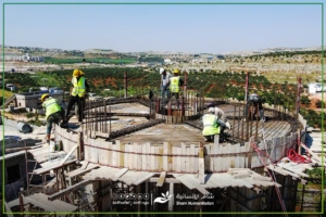 فريق التعافي المبكر في مؤسسة شــــام الإنسانية يُنجز المرحلة الثالثة من بناء خزان المياه في بلدة باتبو شمال إدلب