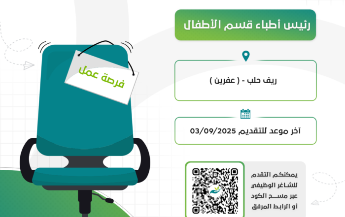 admin 22025-08-31T12:18:23+03:00فرصة عمل : رئيس أطباء قسم الأطفالadmin 22025-08-31T12:18:23+03:00أغسطس 9th, 2025|
