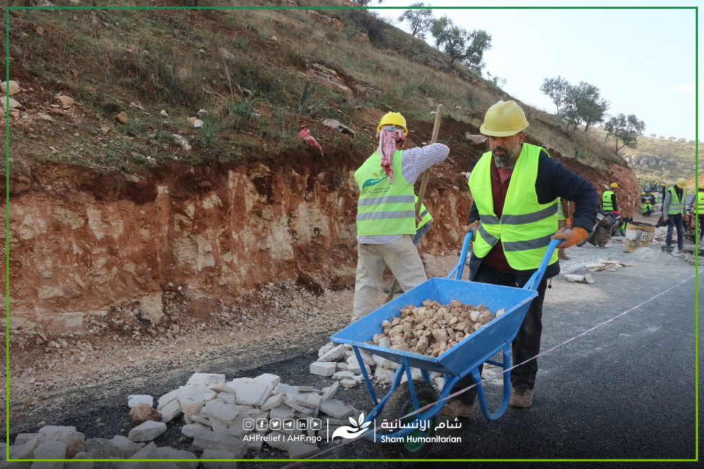 جانب من أعمال فريق #التعافي_المبكر في رصف جانبي طريق #حارم – مفرق #حتان