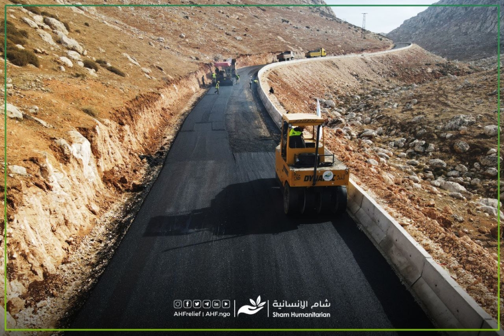 يستمر فريق #التعافي_المبكر التابع #لمؤسسة_شام_الإنسانية بأعمال إعادة تأهيل وتزفيت طريق “حارم – مفرق حتان”،
