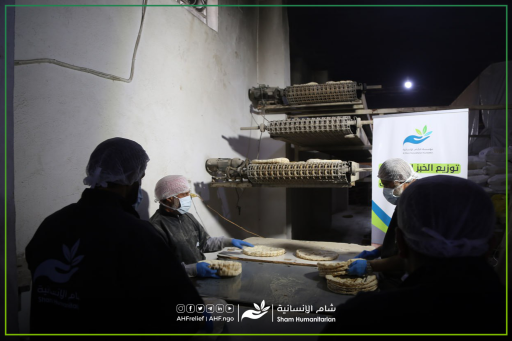 يعمل فريق #مؤسسة_شام_الإنسانية على إنتاج وتوزيع الخبز المدعوم يومياً على 9 مخيمات شمال إدلب