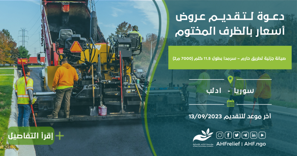 إعلان مناقصة : صيانة جزئية لطريق حارم – سرمدا بطول 11.5 كلم (7000 م2)