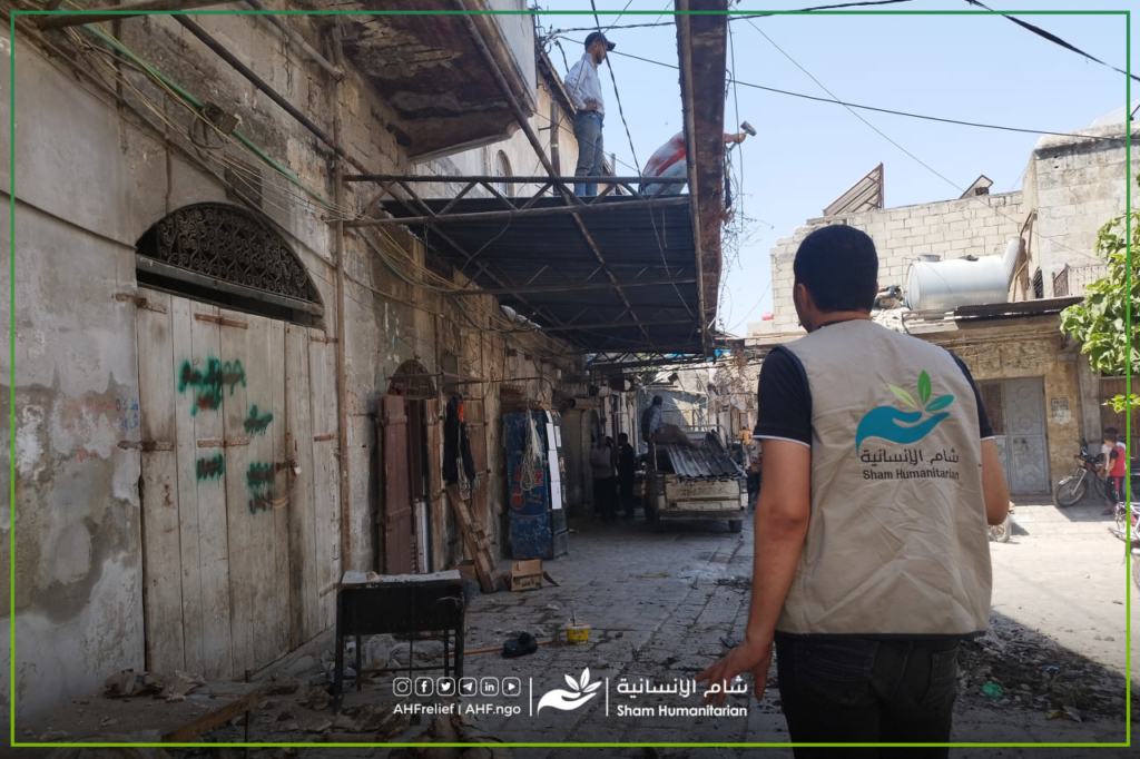 بدأت #مؤسسة_شام_الإنسانية تنفيذ أعمال إعادة تأهيل وترميم #سوق_كفرتخاريم