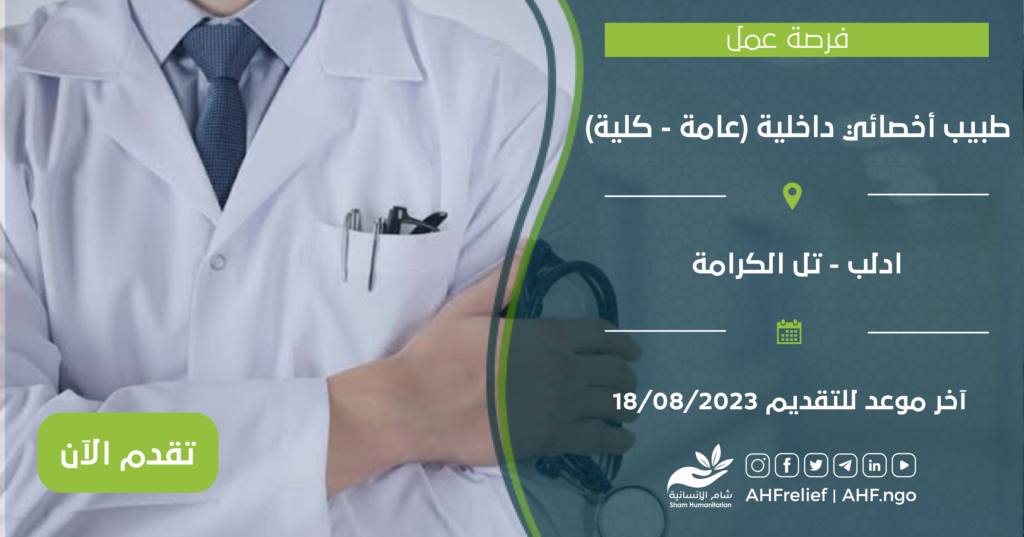 فرصة عمل : طبيب اخصائي داخلية ( داخلية عامة – داخلية كلية )