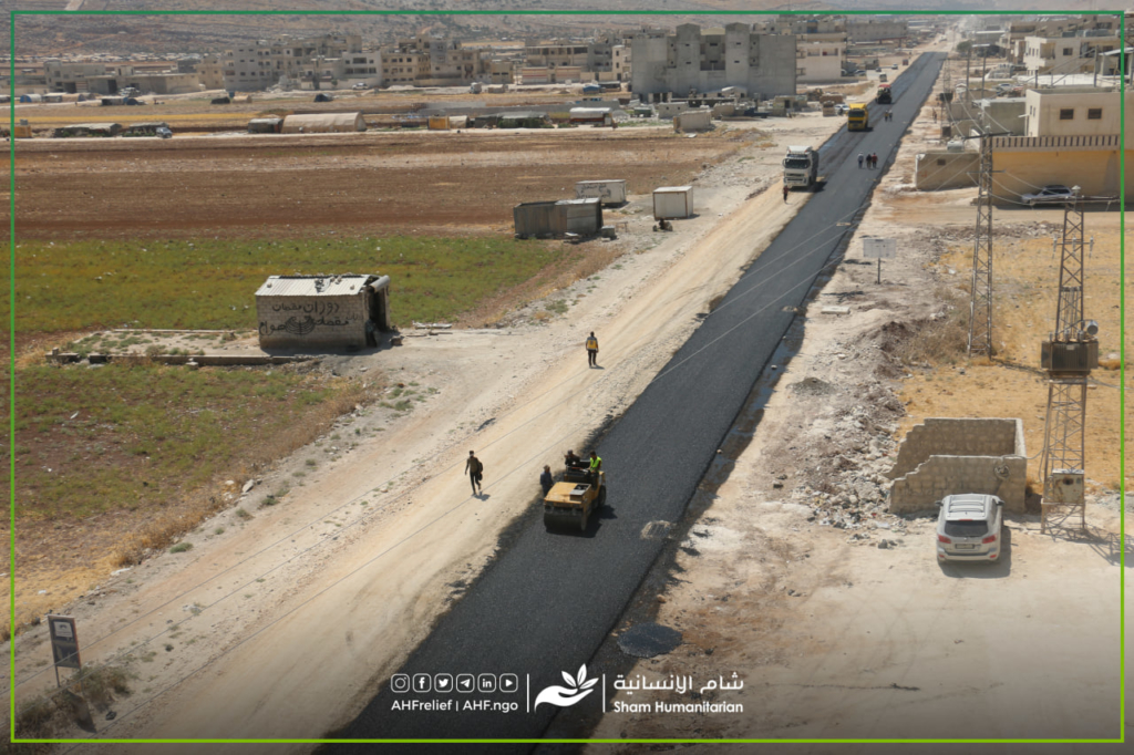 المرحلة الثانية من مشروع إعادة تأهيل طريق سرمدا – كفردريان في ريف ادلب