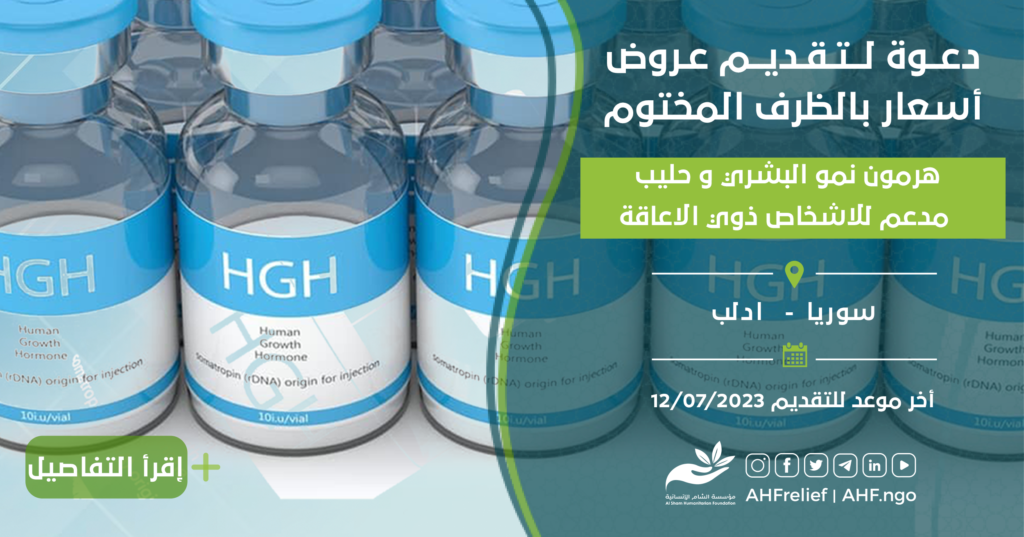 إعلان مناقصة : هرمون نمو البشري و حليب مدعم للاشخاص ذوي الاعاقة