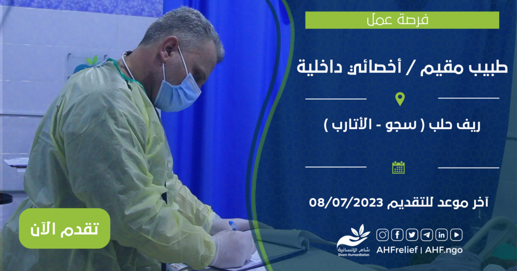 فرصة عمل : طبيب مقيم / أخصائي داخلية