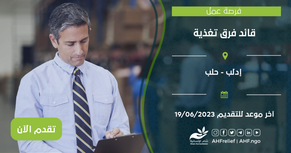 فرصة عمل : قائد فرق تغذية